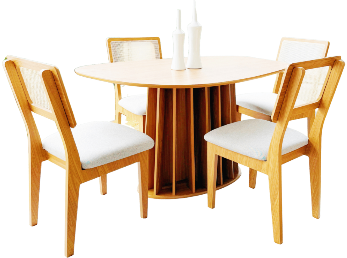 Cód PrzHvlYKMesa Olga tem 1.35x90 e acomodam quatro lugares confortáveis. Base diferente em madeira deixando seu ambiente leve e descontraído