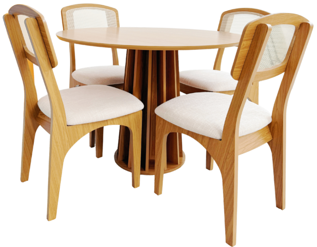 Cód Tyv9iioRMesa Melissa tem 1,05 de diâmetro, toda em madeira freijo, base em madeira super estilosa e leve. Acomodam até 4 pessoas