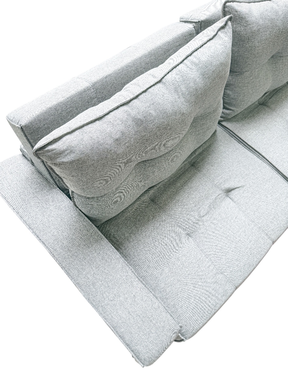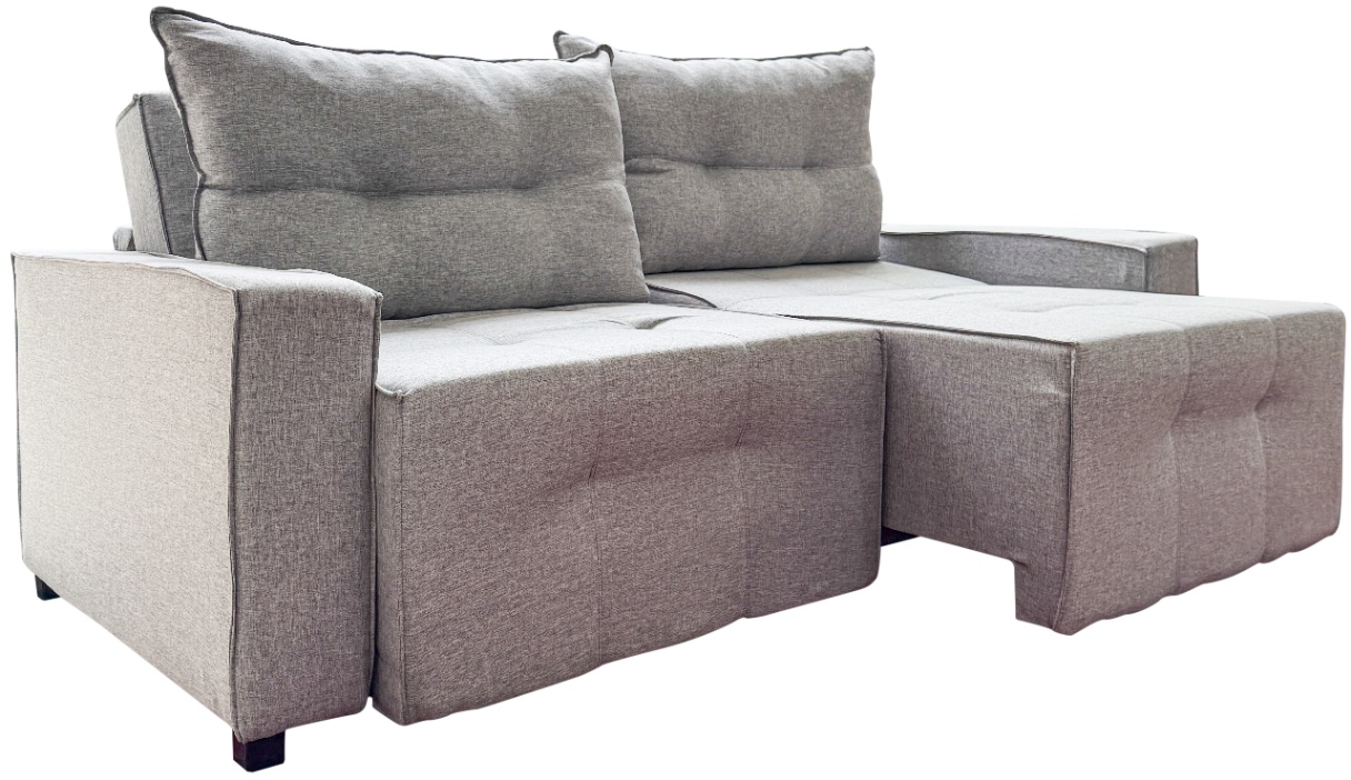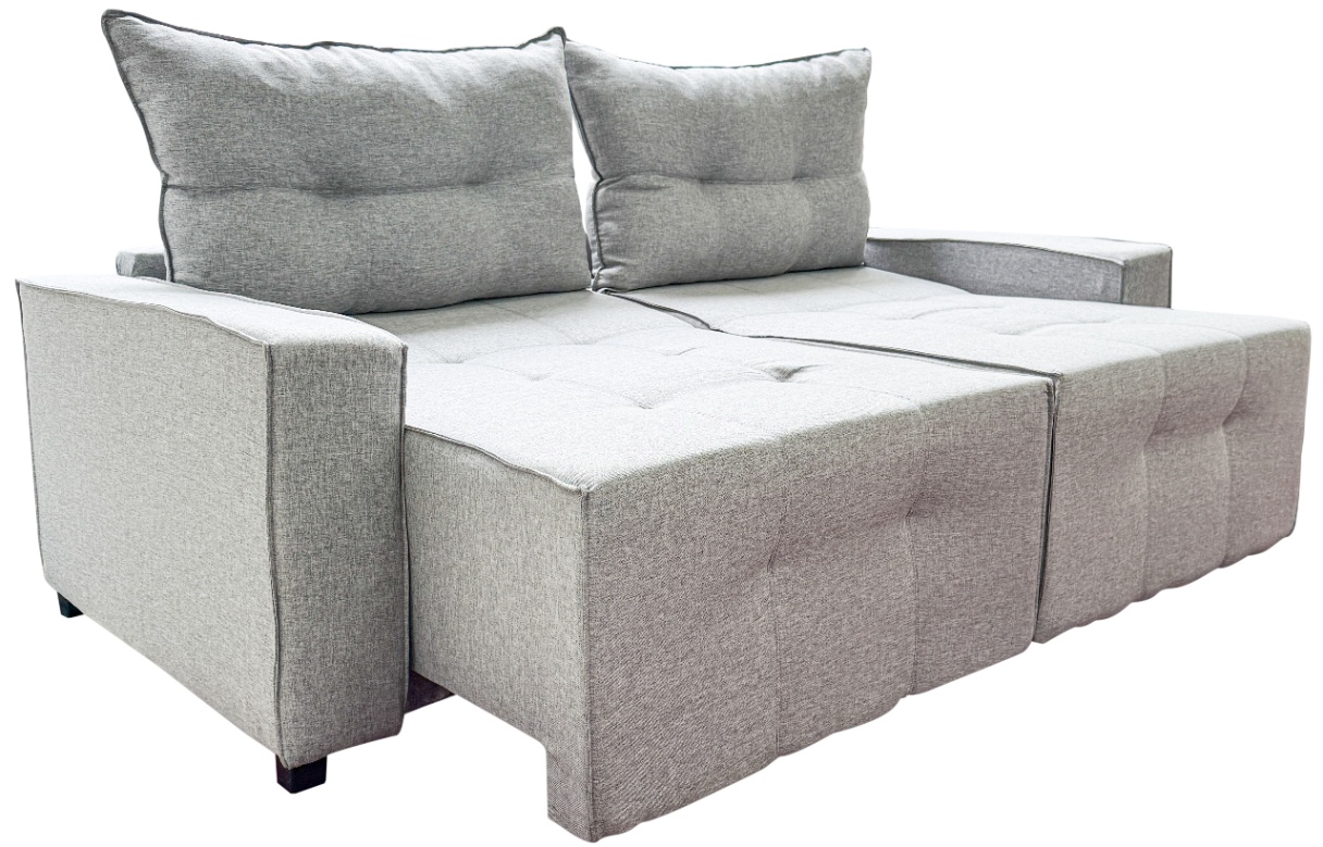 Os braços estilo travesseiro adicionam charme e maciez, tornando cada momento ainda mais acolhedor.