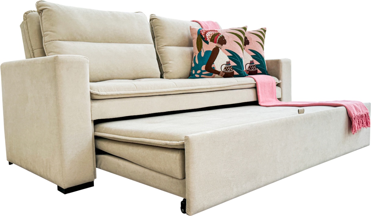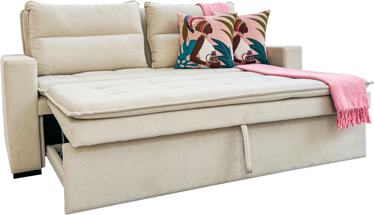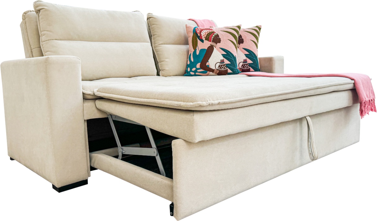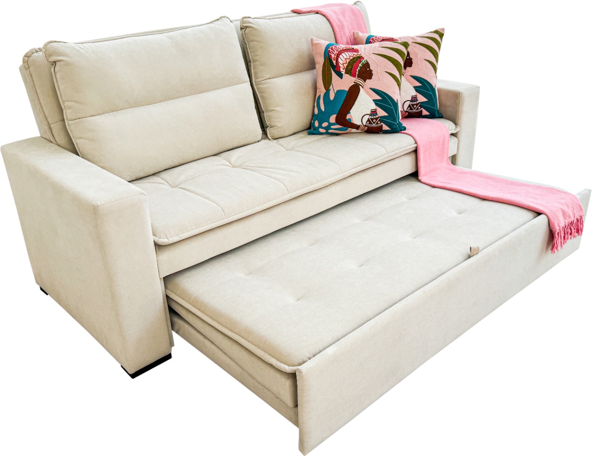 Funciona perfeitamente como sofá principal da sala ou como peça de apoio em um segundo quarto, oferecendo praticidade e conforto extra para receber visitas. Um móvel completo, pensado para otimizar espaços sem abrir mão do bem-estar.